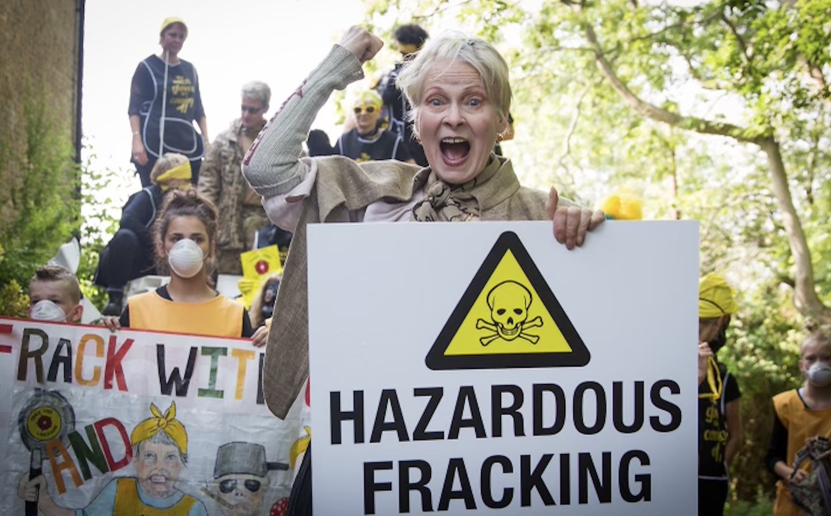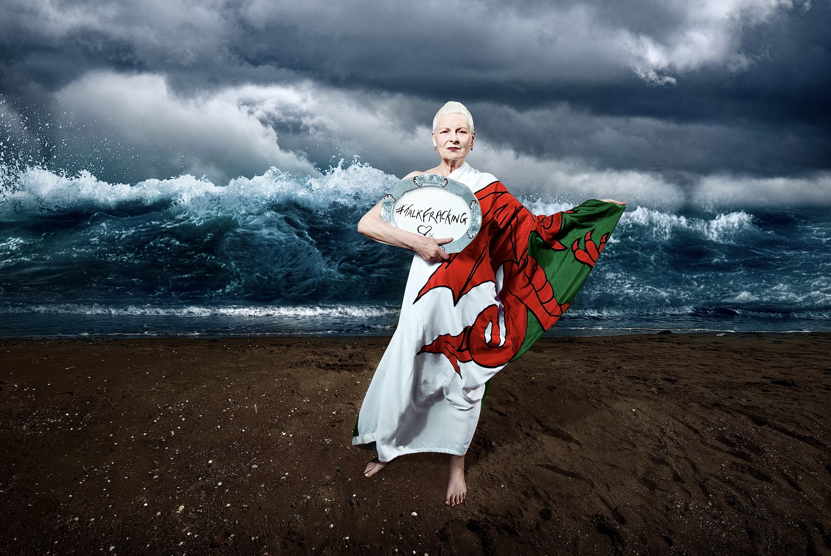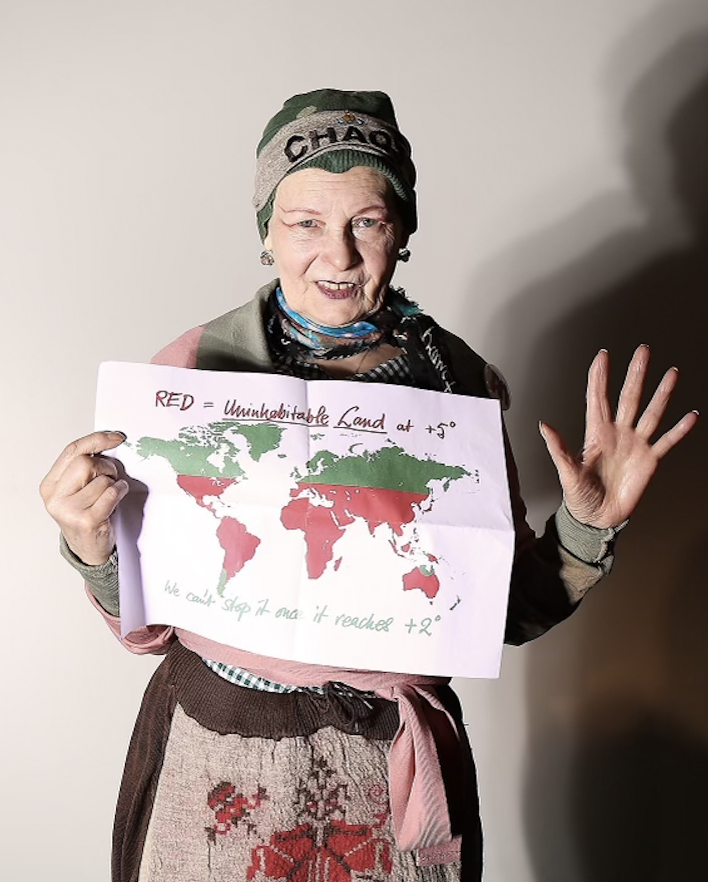 Price shoots with long time collaborator and friend Vivienne Westwood to protest climate change. Credit: Ki Price
