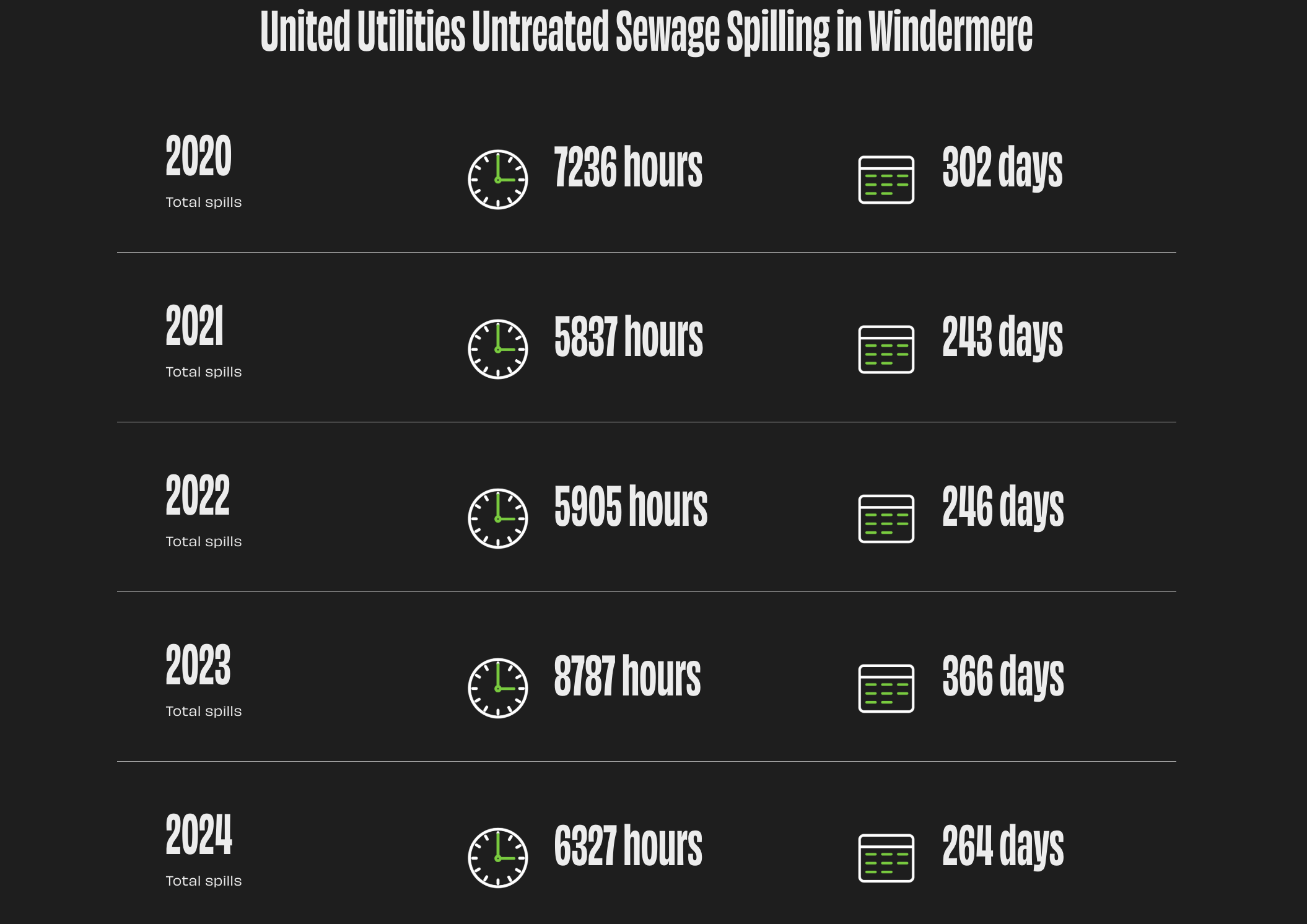 Stretching over 17km and holding 300 billion litres of water, Lake Windermere sits at the heart of England's largest national park and UNESCO World Heritage Site. What should be a pristine showcase of natural beauty has become a casualty of its popularity. According to Save Windermere, United Utilities, the Lake District’s sewage and wastewater management company, discharged untreated sewage into Windermere for 6,327 hours in 2024 alone. That's equivalent to 264 days of continuous raw sewage flowing into England's most famous lake.