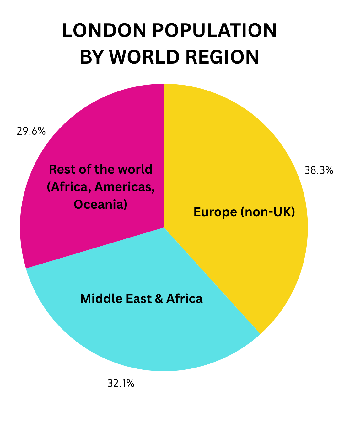 London population breakdown by world region. Graphic by Sydney Boyd.