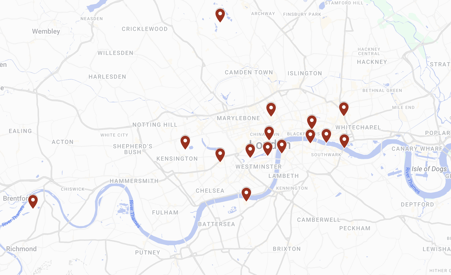 Map of some of London's most popular tourist attractions spread across the boroughs. Image by Sydney Boyd.