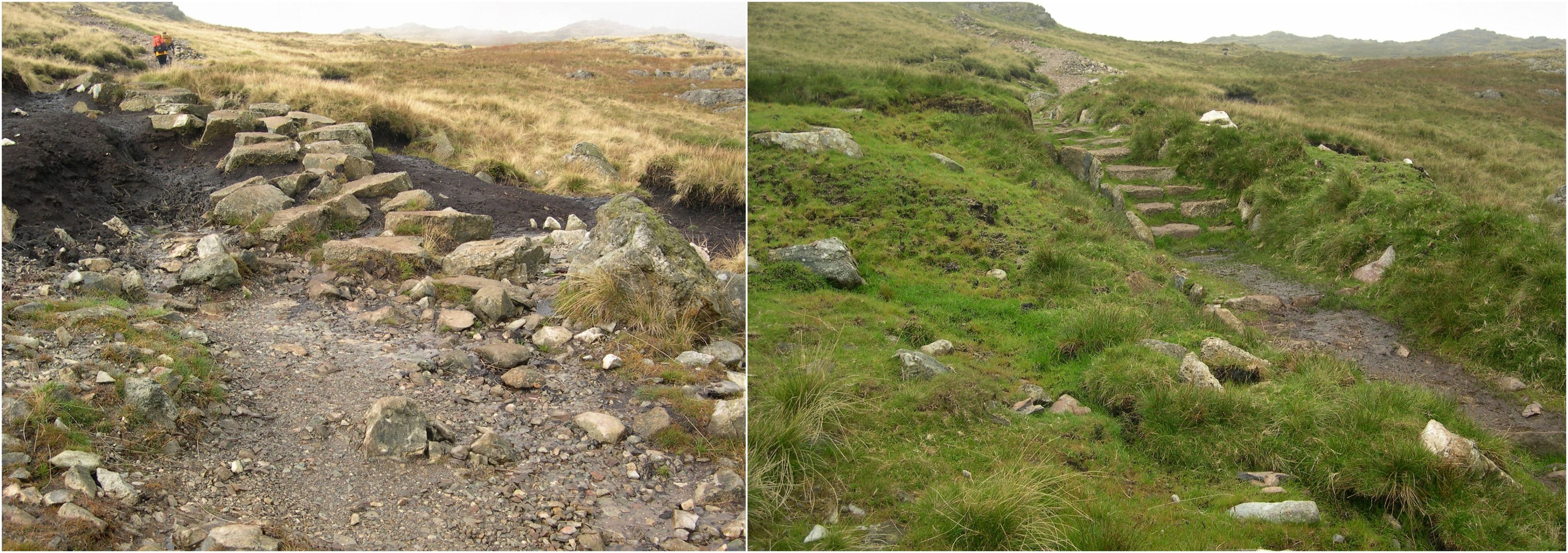 A before (2004) and after (2019) of path repair on Silverhow. Image by Fix the Fells.